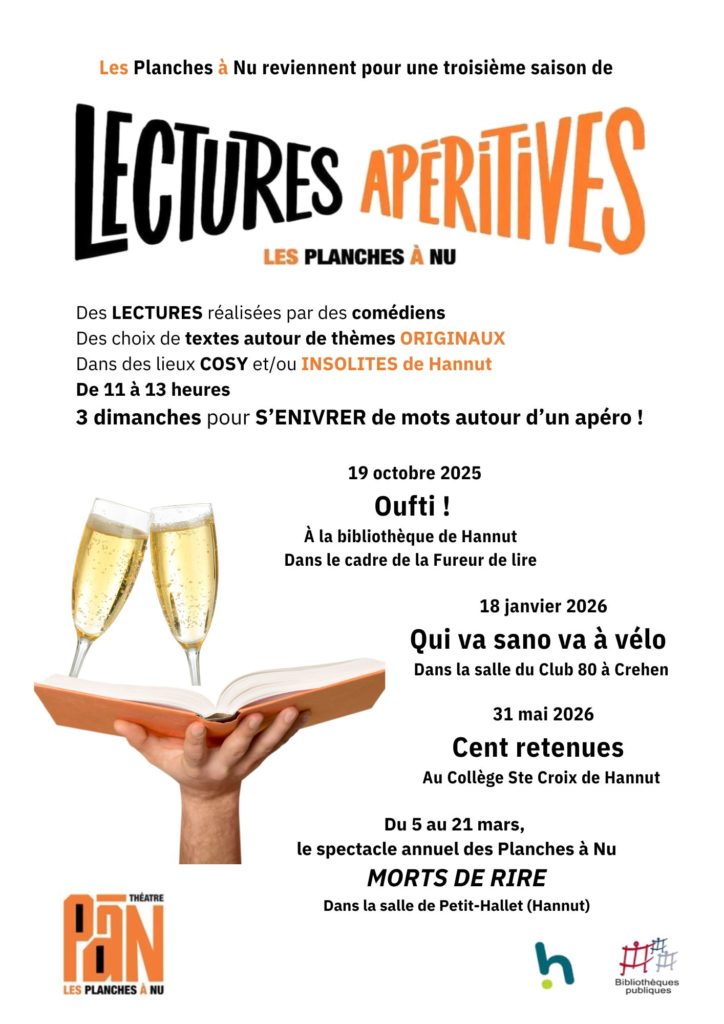 Les infos sont disponibles sur le site www.planchesanu.be, sur la page facebook.com/theatrehannut ou au numéro 0479 77 90 45.